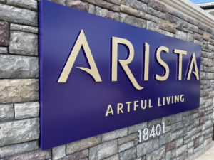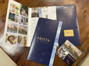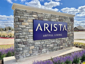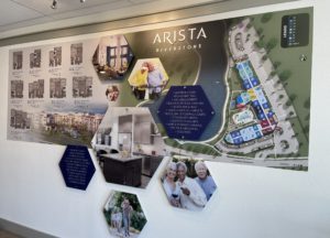 RC completes branding, print, identity & signage for Arista. Inspired by a Mediterranean influence, the approach is affluent but budget conscious. Rich colors, metals and shapes combine to form a brilliant campaign for this select market. During construction, the management team set up a temporary retail office in which RC created a branded wall that set the stage for the campaign. The wall will continue to evolve into the permanent space. Print and collateral materials are an integral part for this unique market. They are informative, visual, and diverse. The identity and sign campaign present a solid brand statement, speaking to the prospect while providing wayfinding and a stunning voice for the community.