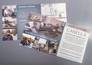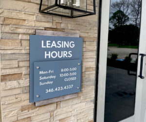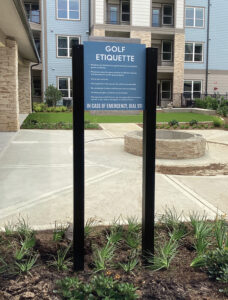 Robinson names and completes community signage for this stylish new independent living community in Spring, Texas. Cool tones, classic images, and texture combine to establish this captivating new construction community. Look for more print and identity signage coming soon!