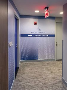 Hudson Lights, just outside of NYC, is a mixed-use development featuring hi-rise residential, retail, restaurants, and an iPic Cinema. Like many urban properties, Hudson Lights is designed around a complex garage. The challenge is to provide parking for retail and residents as well as illuminating the path for the prospect. With so many options, a garage becomes confusing and, in this case, prospects must be guided to a specific area, elevator, and pathway to the leasing office.