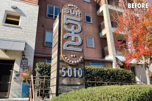 This 6-year-old Austin community needed a fresh approach with new property colors. RC re-worked weathered Cor-ten metal and rustic wood to establish a more refined approach with all signs… Completely revitalizing the brand! It’s more than a coat of paint. All existing signs were refreshed with new cabinets, faces and electrical. Woods were completely replaced with exterior-grade wood and translucent denim stains. Community signs continued the look with high-pressure laminate.