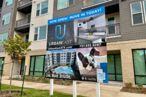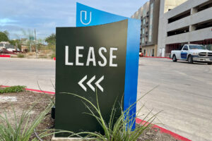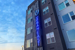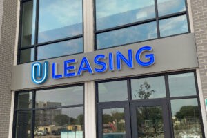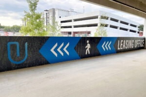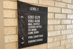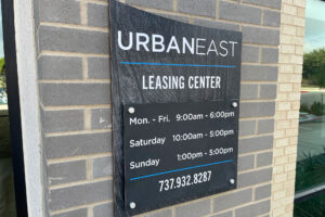 Austin has a brand new urban community! RC completes all design, fabrication and install of this brilliant campaign. This community had its challenges with on-going construction and a phase two starting right when opening. Strategic identity and leasing wayfinding is established for a quick and successful lease-up! Key identity is established in main traffic corridors to attract and clever wayfinding guides prospects to the leasing office. In order to capture traffic, the signature “U” icon is perched high on the building and introduces traffic from a major thoroughfare. This bold approach starts with a powerful brand, LED neon and attractive colorations.