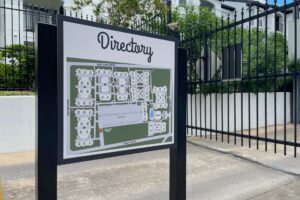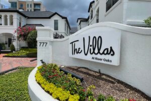 A Houston property gets refreshed with bold yet classic black-and-white colorations and an upscale, but iconic 40s “Beverly Hills Hotel” logotype. Two striking monuments grace the community in two key areas, and the sign campaign continues the black & white styled brand throughout. Located in Houston’s prestigious River Oaks neighborhood, this 20-year-old community quickly sold after the repositioning.
